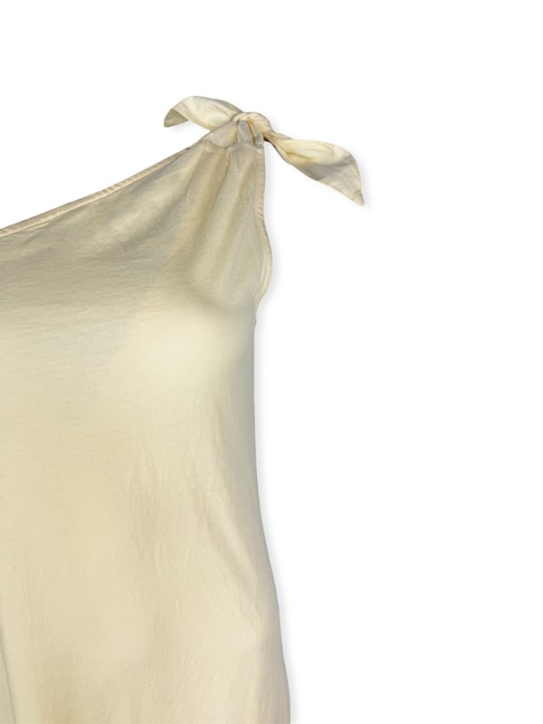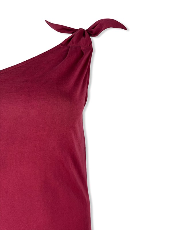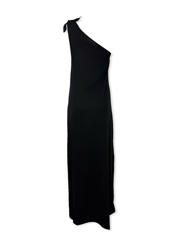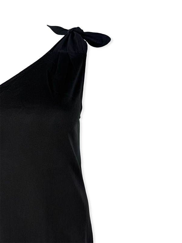 Abito jersey cotone monospalla nodo. Modello lungo con ampio spacco laterale sulla parte sinistra. Monospalla da annodare a fiocco. Vestibilità 40/44. Composizione: 100% cotone. Made in Italy.