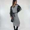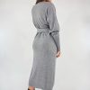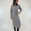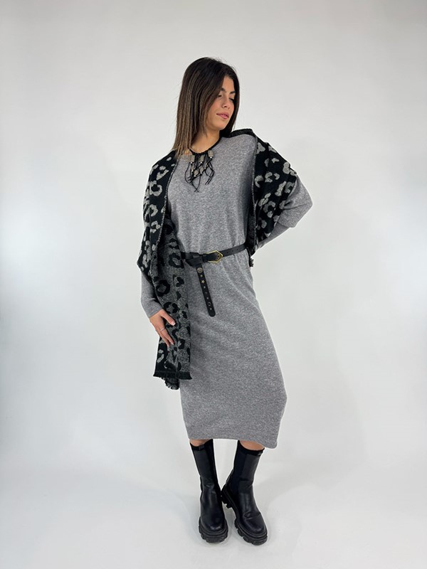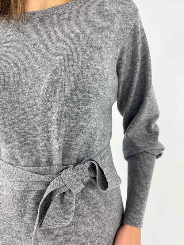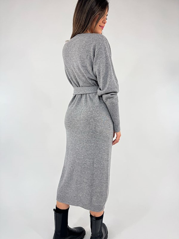 Abito lungo 100% lana con fusciacca da annodare in vita. Collo a giro e manica lunga. Fit leggermente aderente in un filato morbidissimo e caldo. Larghezza seno 50 cm, lunghezza dalla spalla 120 cm. Composizione: 100% lana. Made in Italy.