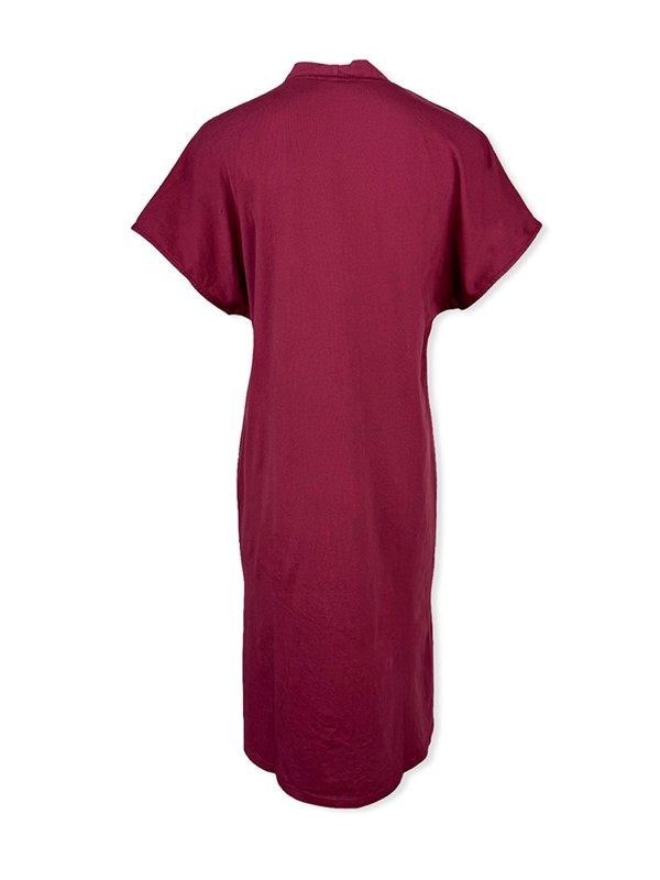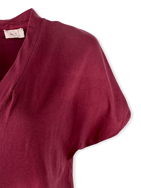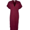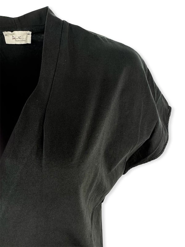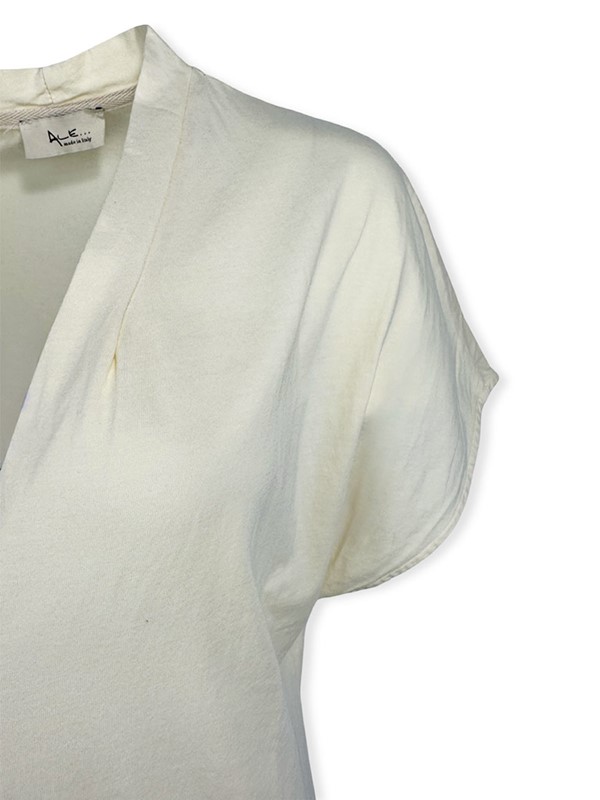 Abito scollo V profondo in jersey di cotone. Modello non sfiancato a mezza manica. Lunghezza appena sotto al ginocchio. Vestibilità: 40/46. Composizione: 100% cotone. Made in Italy.