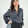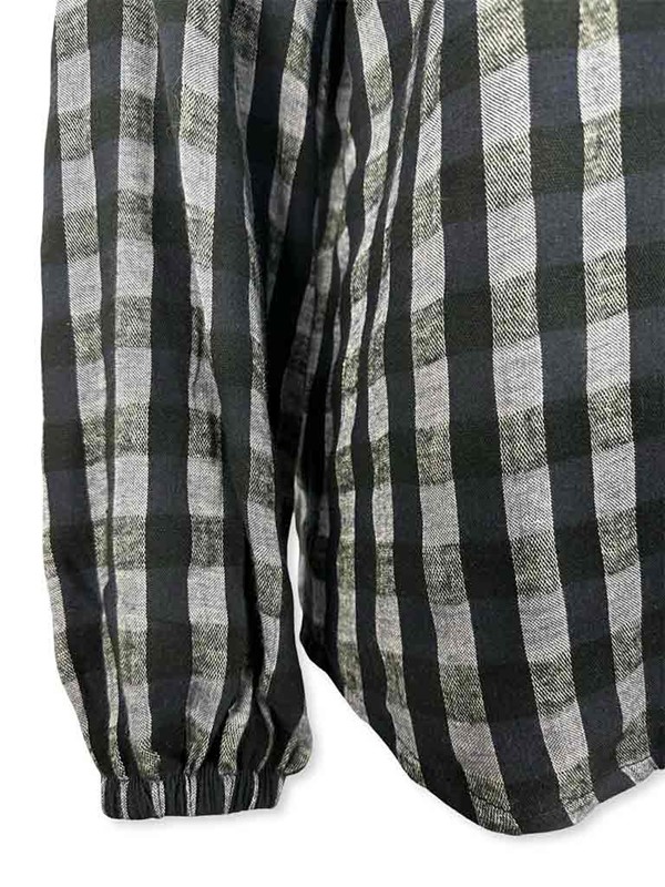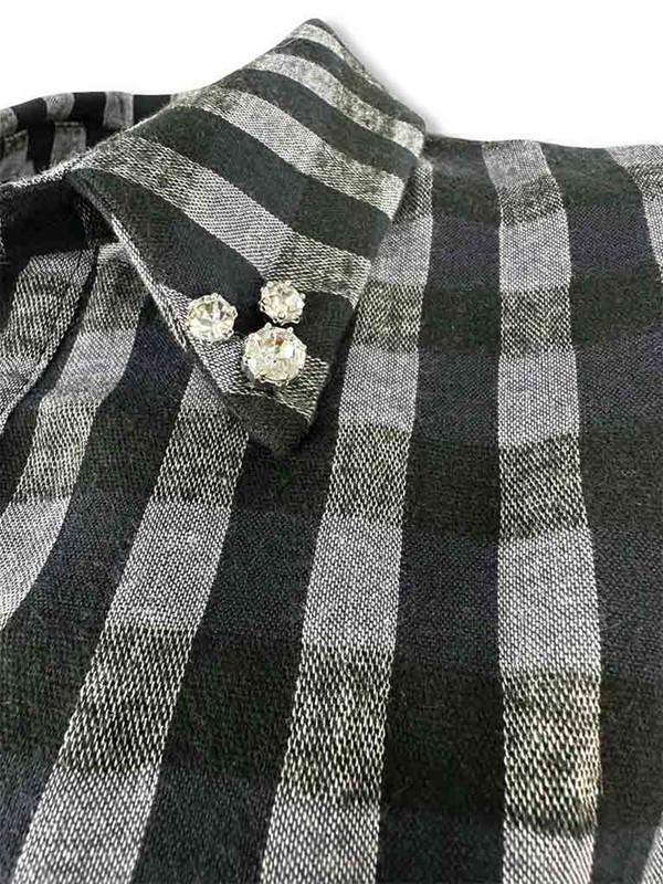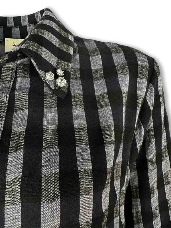 Camicia a quadri strass colletto. Modello over, non sfiancato. Collo a V con piccola galetta e colletto con motivo di pietre. Manica con elastico, stondata in fondo. Realizzata in caldo cotone ideale per la stagione invernale. Vestibilità 40/46. Composizione: 50% cotone 40% viscosa 10% poliammide. Made in Italy.