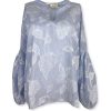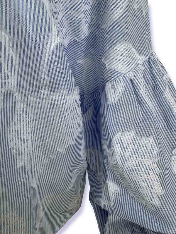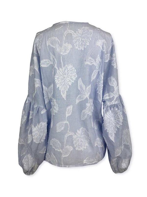 Camicia con ricami baloon. Modello a scatola con spalla scesa e manica ampia con elastico nel polsino che crea un effetto a palloncino. Collo a V. Texture molto leggera. Larghezza seno 54 cm, lunghezza dalla spalla 58 cm. Composizione: 100% cotone. Made in Italy.