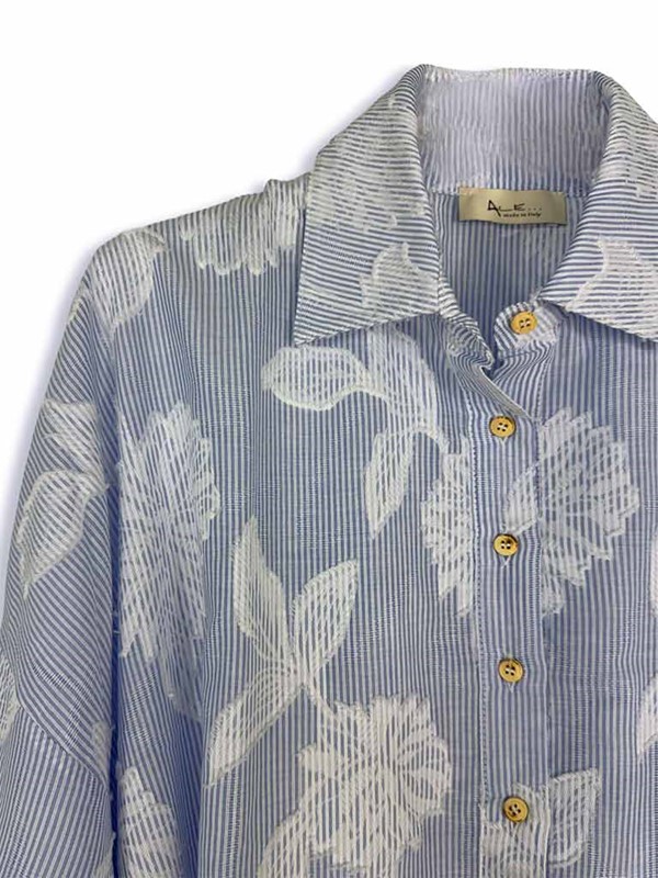 Camicia polo con ricami e chiusura con bottoncini in mussola di cotone. Modello over, a scatola, con spalla scesa. Texture leggerissima, adatta per i tuoi outfit primaverili ed estivi. Vestibilità 40/46. Larghezza seno 66 cm, lunghezza dalla spalla 61 cm. Composizione: 100% cotone. Made in Italy.