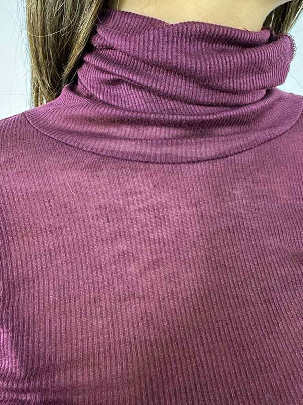 Garzina collo alto costina cashmere. Sottogiacca elasticizzato aderente e tinta unita. Texture velata morbidissima sulla pelle. Vestibilità 38/44. Composizione: 70% viscosa 20% poliammide 10% cashmere. Made in Italy.