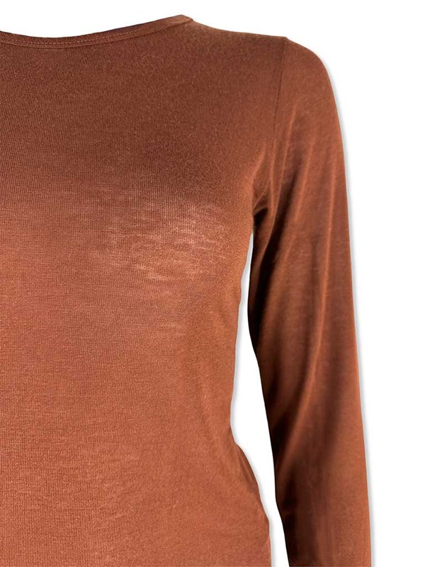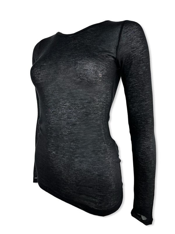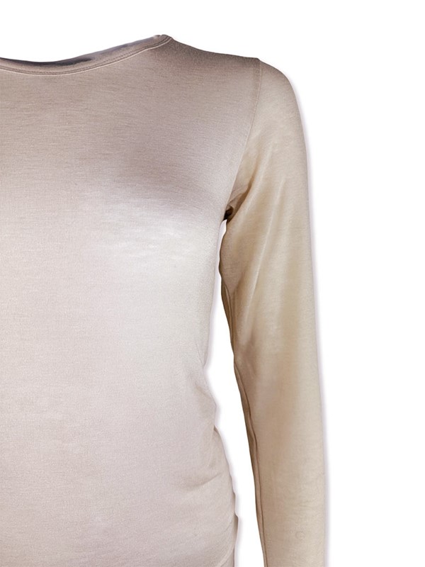Garzina scollo tondo misto cashmere. Sottogiacca elasticizzato aderente tinta unita. Texture velata, morbidissima sulla pelle. Vestibilità 38/46. Composizione: 66% viscosa 19% nylon 9% lana 6% elastan. Made in Italy.
