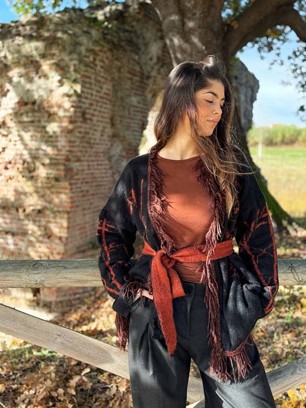 Cardigan mohair frange e borchie