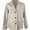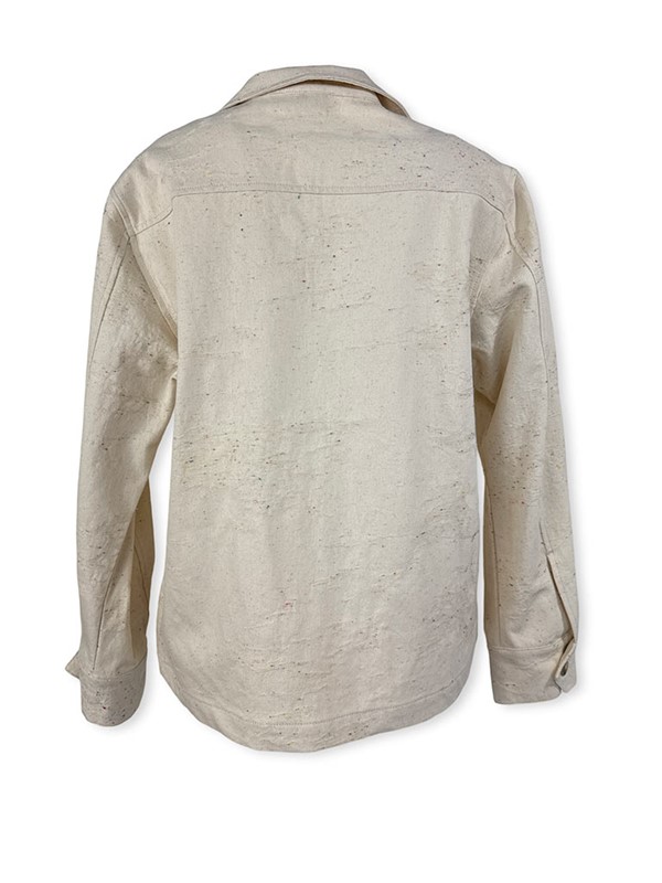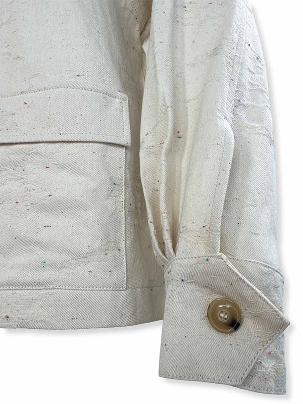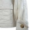 Giacca sahariana con bottoni. Modello ampio, non sfiancato con lunghezza ai fianchi. Davanti presenta due tasche quadrate con pattina. Allacciatura monopetto con collo a revere. Manica ampia, polsino con bottone apribile. Larghezza seno 54 cm, lunghezza dalla spalla 61 cm. Composizione: 99% cotone 1% elastan. Made in Italy.