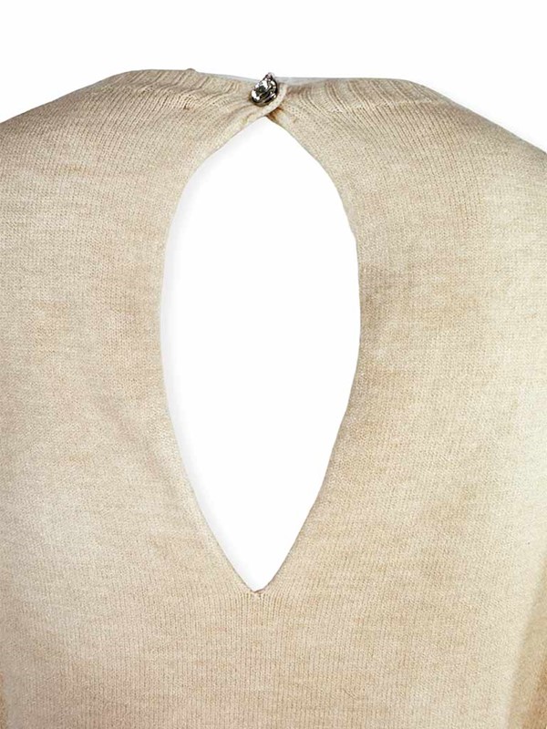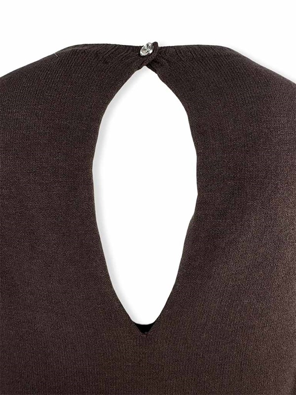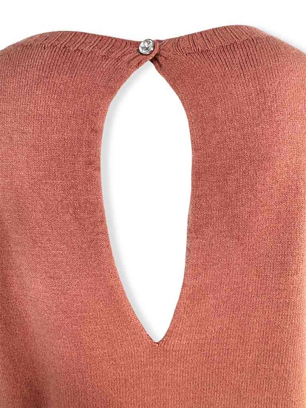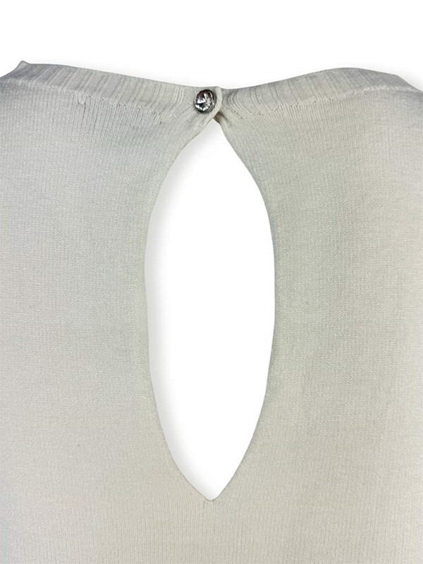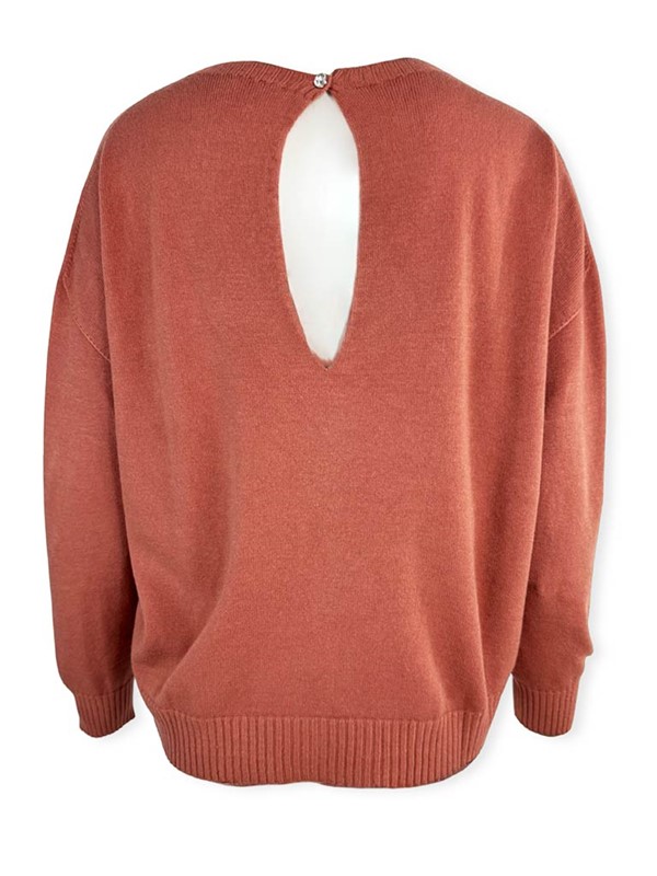 Maglia scatola goccia dietro, tinta unita. Maglioncino girocollo in morbida viscosa con maniche lunghe e bordi a costine. Modello oversize, la particolarità è sul retro con apertura a goccia e bottoncino gioiello. Vestibilità 40/46. Composizione: 50% viscosa, 27% poliestere, 23% poliammide. Made in Italy.