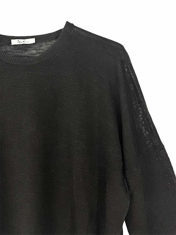 Maglia scatola misto lino, modello dritto non sagomato, lunghezza alla vita. Il filato estremamente leggero conferisce al capo una lieve trasparenza. Vestibilità 38/44. Composizione: 55% lino 45% viscosa.
