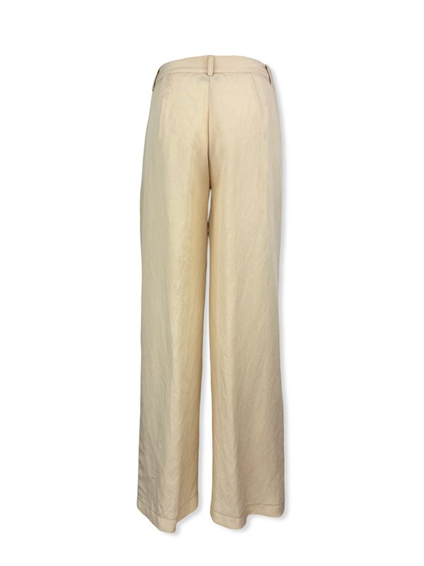 Pant palazzo doppia piega a vita alta in viscosa e lino. Chiusura con bottone e zip. Passanti per cintura. Tessuto leggerissimo. Fit wide a gamba ampia grazie alla doppia pinces. Vestibilità regolare. La modella è alta 170 e indossa la tg 42. Composizione: 78% viscosa 22% lino. Made in Italy.