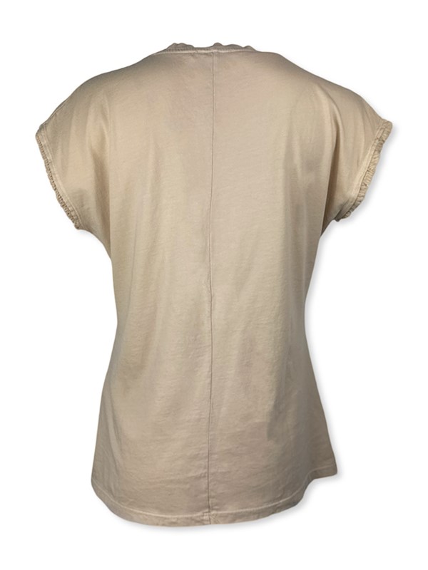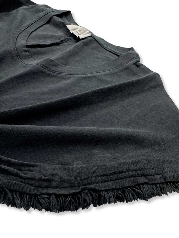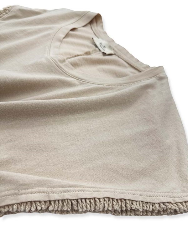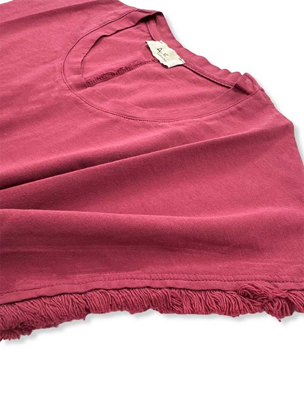 Smanicata con frange. Modello slim in cotone senza maniche. Scollatura ampia, motivo di frangine nel giromanica. Vestibilità 40/44. Larghezza seno 51 cm, lunghezza dalla spalla 62 cm. Composizione: 100% cotone. Made in Italy.