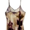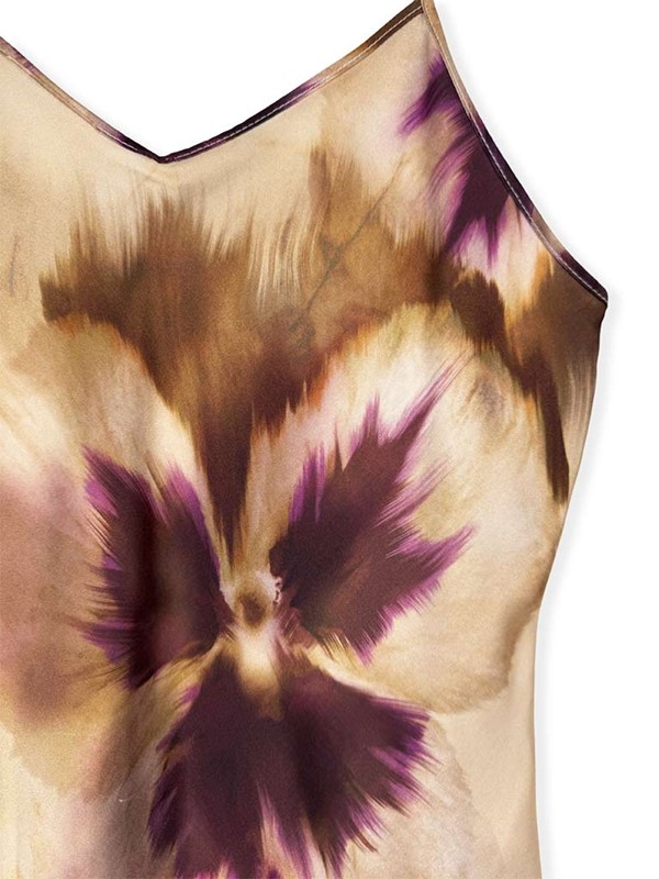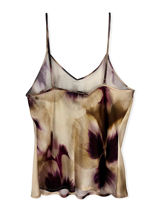 Top in raso fantasia con taglio intralice. Spalline sottili regolabili. Vestibilità 38/42. Composizione: 100% viscosa. Made in Italy.